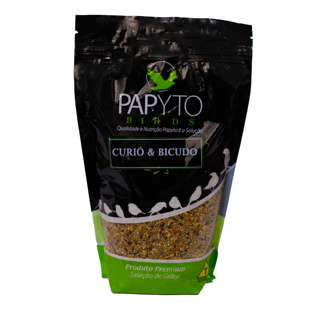 Indicação: Curió-bicudo-azulão Composição: Alpiste, painço comum, painço alemão, painço preto, painço vermelho, painço verde, arroz cateto, sorgo vermelho, sorgo branco, trigo mourisco, extrusado.
